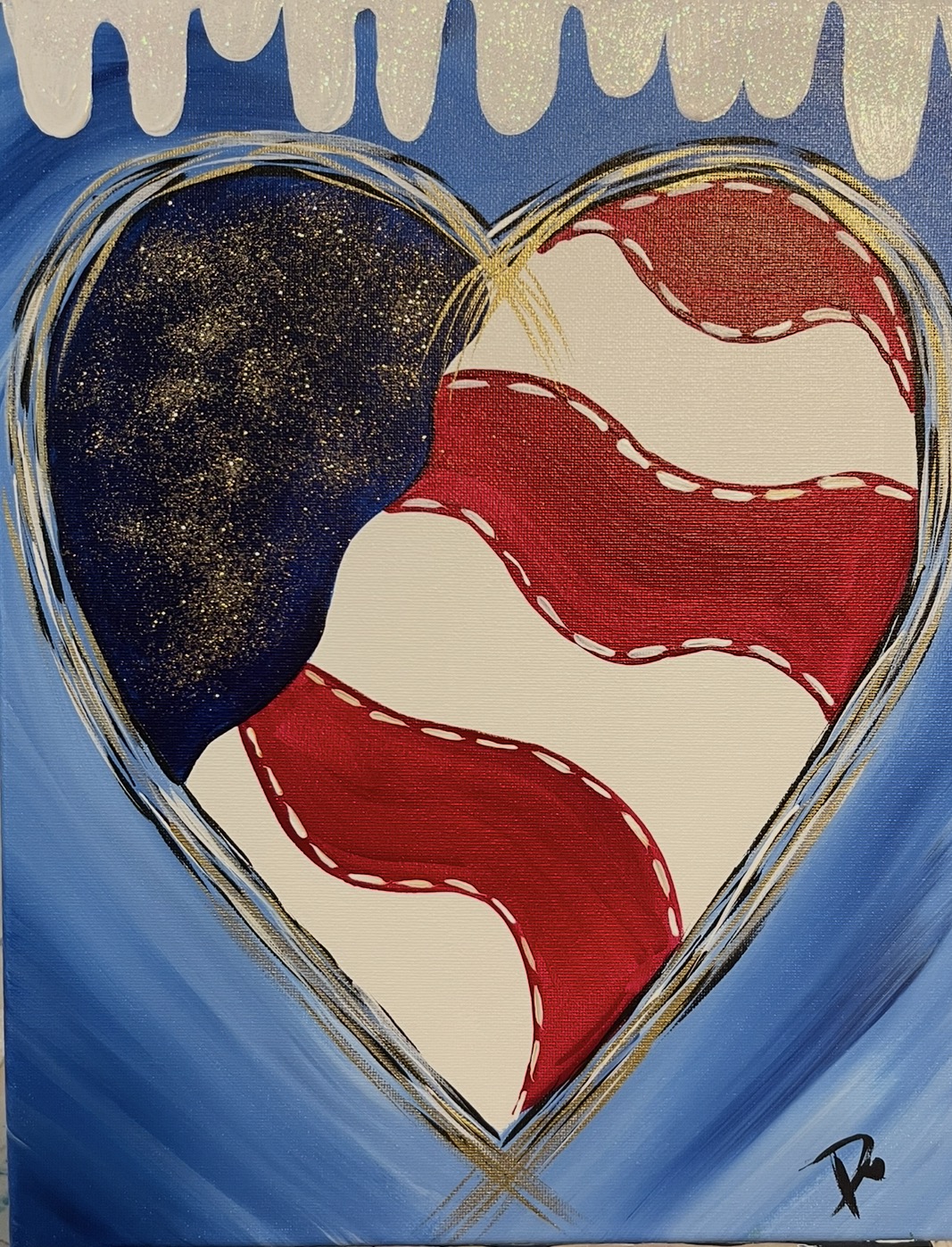 Show your love for the USA with this glitter heart! We will be using 2 different colors of glitter and gold paint to make this painting sparkle and shine.